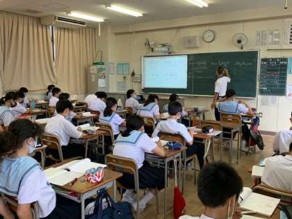 本校は各教室に壁掛けプロジェクター、特別教室には大型電子黒板が設置されているため、映像や画面を映し出しながらの授業が可能になっています。