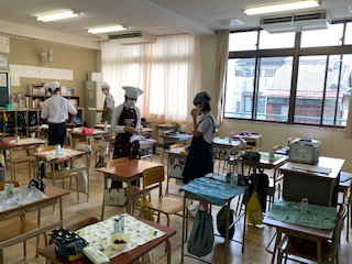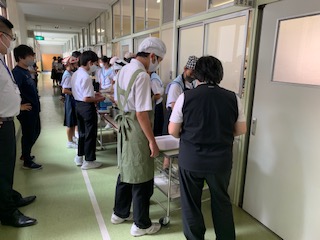 給食当番が責任を持って皆んなの食事を配膳しています。