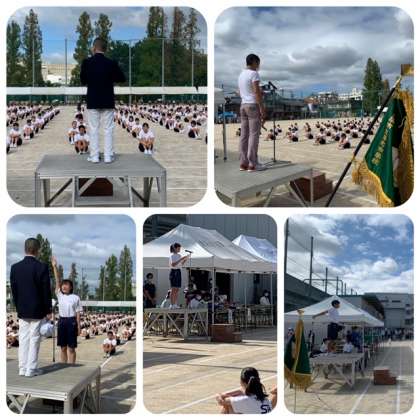 待ちに待った体育大会。合図とともにスタンドから元気に駆け足で整列して、開会式を行いました。校長先生のあいさつに続き、PTA会長様からもごあいさつをいただきました。
