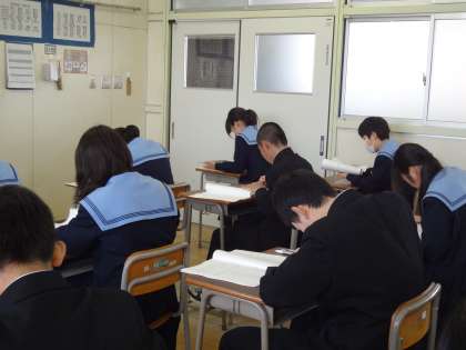 14日(水)、大阪府のチャレンジテストが実施されました。1年生は国・数・英、2年生は国・社・数・理・英の各教科です。朝から解答用紙に名前等を記入し、いつもとは少し違った緊張感が教室に漂っています。真剣に最後まで取り組みましょう。