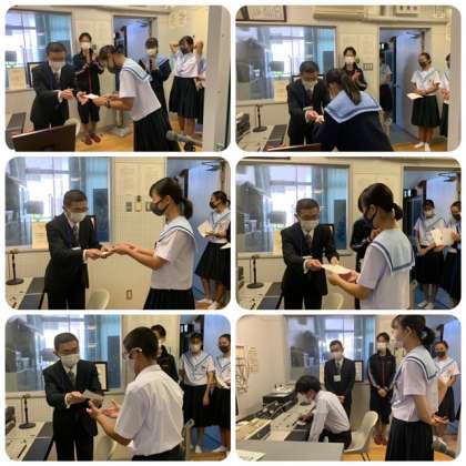 各学級を代表して、3年1組の学代が認証状を受取りました。