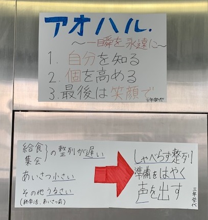 3年生は「アオハル(青春)」真っ只中。この時期に身につけた規範意識や道徳心を生涯に渡って持ち続けてください。