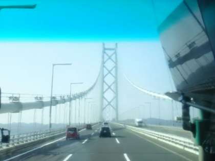 明石海峡大橋を通過中です。快晴、眺望よし!