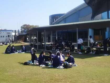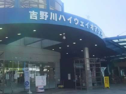 吉野川ハイウェイオアシスで、青空の下、早めの昼食です。