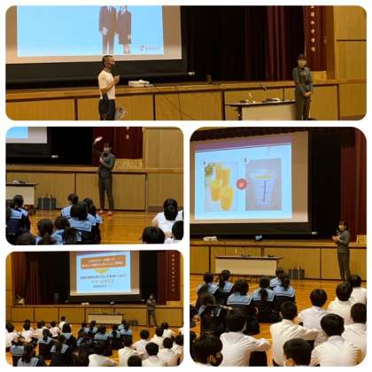 大阪菅公学生服の山本様をお招きし、標準服の着こなしについてお話をしていただきました。「素敵な着こなし方を身につけてイメージアップをはかろう」というものです。また、「人の第1印象はたった6秒で決まる。」そのためにも身につけておきたい「起立」「礼」の所作も学びました。美しい着こなしができる素敵な中学生になってください。