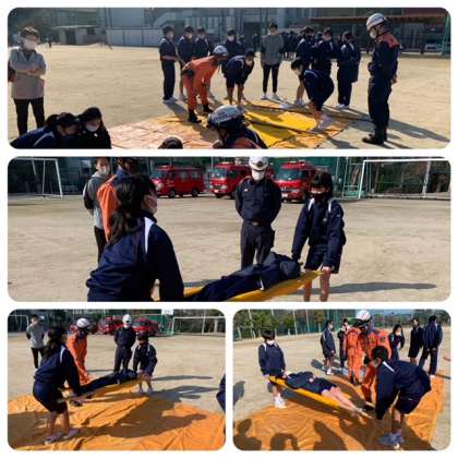 防災・減災教育 〈2年 防災訓練 簡易担架〉