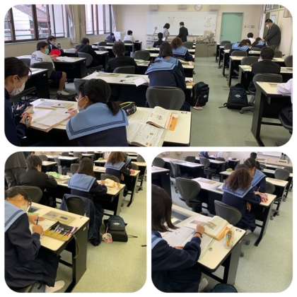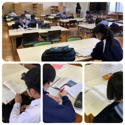 土曜日でも自主的に朝から登校して学習しています。大変静に自分で用意した課題を一生懸命にこなしています。