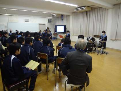 吹奏楽部が、音楽室で発表会を行いました。放課後の時間帯にもかかわらず、用意した座席が満席になるほど、多くの聴衆が駆けつけました。日頃の練習の成果を発揮し、素敵なハーモニーを奏でていました。
