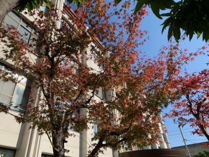 季節の変化とともに、紅葉の色も緑から赤へと変わってきました。