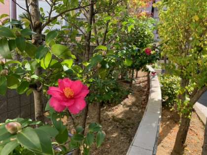 校内の至る所に植わっている椿の花が咲き始めました。1週間ほど前までは固かったつぼみも、幾つかは真っ赤な花を咲かせています。赤い花の椿は「控えめな素晴らしさ」「謙虚な美徳」という花言葉があるそうです。