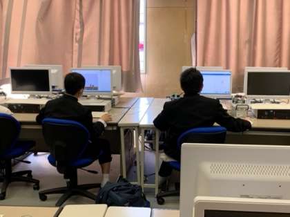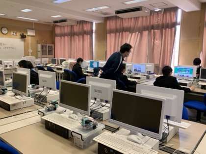 パソコン室ではコンピュータ部がオリジナルゲーム作成や学校紹介動画作成に取組んでいます。