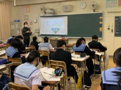 1年2組では社会、2年1組では数学の授業がおこなわれています。