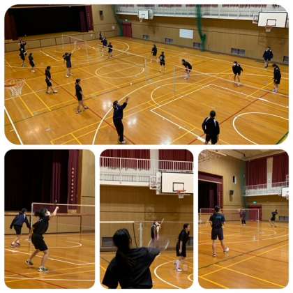運動場ではサッカー部、体育館ではバドミントン部、武道場では剣道部が練習に励んでいます。