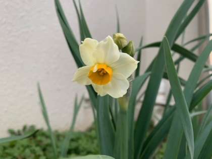 水仙の花が一輪咲きました。昨年より9日遅い開花です。昨年より寒さが厳しいせいかもしれません。一歩一歩、季節が移ろいでゆきます。