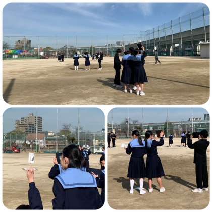 タブレット端末に雲の様子を収め、手作り風測定装置で風向きを調べました。