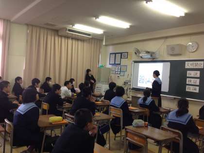 2年1組は、歴史的分野の「文明開化」の単元で、公開授業を行いました。「文明開化」について調べたことを、Keynoteでまとめ発表しました。
