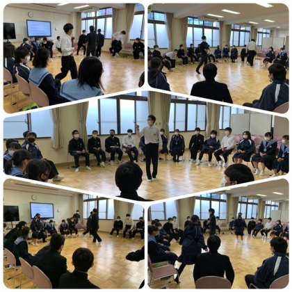 クラス単位でゲーム「フルーツバスケット」をしながら楽しく英語を学びました。