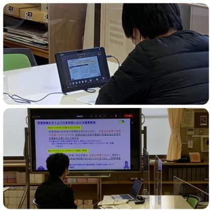 本来なら、大阪市教育センターで教科・領域で13回にわたって開かれるはずだった新学習指導要領の着実な実施に向けた説明会ですが、コロナ禍の緊急事態宣言下のため、学校からオンライン「Teams」を使って説明を視聴する方法へと変更になりました。