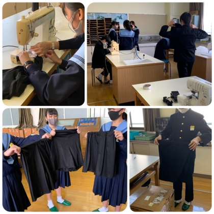 4本糸のロックミシンを使って、ニット生地でハーフパンツを作製しました。