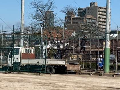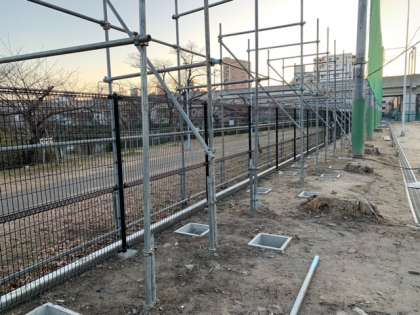 ブロック塀と違って、フェンスの向こう側にある桃ヶ池や家々がよく見渡せます。