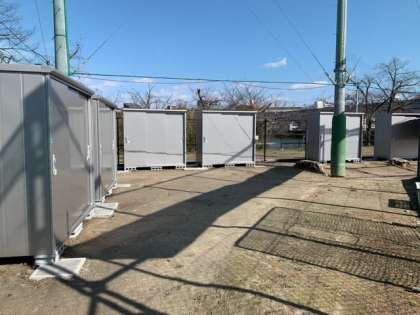 北側フェンス設置に伴って、今まであった倉庫をすべて撤去して、新しい倉庫を6つ市教育委員会が設置してくださいました。