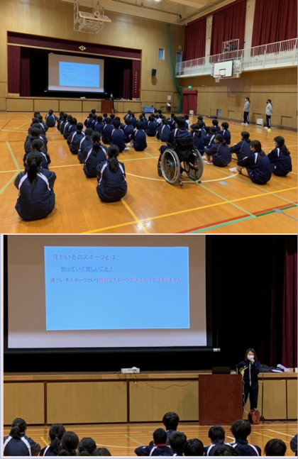 長居障がい者スポーツセンターから3人の方をお招きし、障がい者スポーツについてのお話と「ボッチャ」についての実技指導をしていただきました。