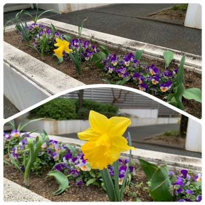 11月上旬に学校元気アップさんと管理作業員さんの指導のもと、ふれあい委員の生徒が植えた黄水仙がきれいに咲いています。委員生徒も毎日水やりをしてくれています。