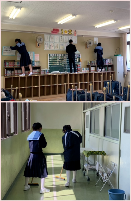 明日の修了式を控え、1.2年生全員で大清掃を行いました。