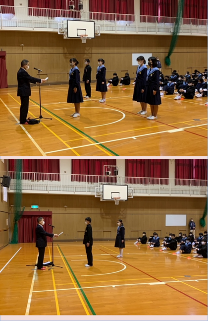 まず初めに前期生徒会役員の認証式を行いました。新役員の皆さん昭和中学校を宜しくお願いします。
