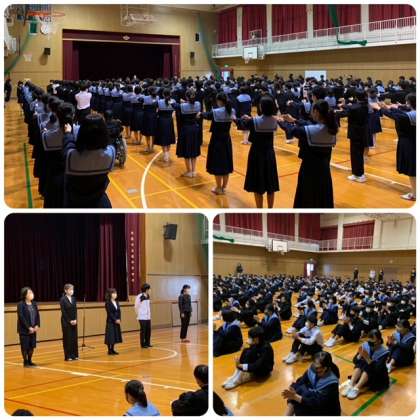 新転任の先生を紹介しました。今年は5名の先生が昭和中学校に入られました。先生一人一人に対して生徒から大きな拍手がありました。慣れない環境の中でも生徒のために頑張ってくれます。
