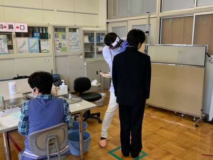 耳鼻科校医の二村先生に来校いただき全校生徒の耳・鼻・のどを診察していただきました。
