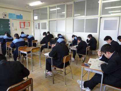 2年生のテスト風景です。3年生は、本日午後2時に、公立前期選抜の合格発表がありました。4月からは、いよいよ2年生が最高学年になります。今年度最後の定期テスト、しっかり力を出し切って!