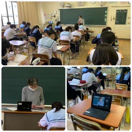 教室では、授業する先生がカメラ付き端末の前に立ち、普段通りの授業を3時間行いました。