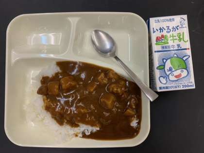 本来3年生は今日から3日間、修学旅行に行く予定でしたが、緊急事態宣言が発出されたため延期になり、学校給食に変更になりました。しかし、食材が間に合わないため3年生のみ野菜カレー(ヒートレスカレー)メニューになりました。