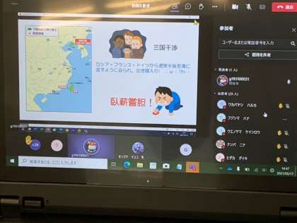 「歴史分野」で「日清戦争」について授業をしました。画像を写しだして、わかり易く説明をしました。