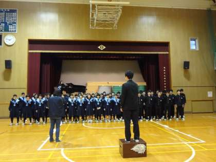 3年生は、体育館で「卒業の歌」の練習を行いました。女子より人数の少ない男子は、声を出すのがしんどそうです。けれど、みんなの思いを込めた歌声が、卒業式で披露できるように頑張って練習しています。