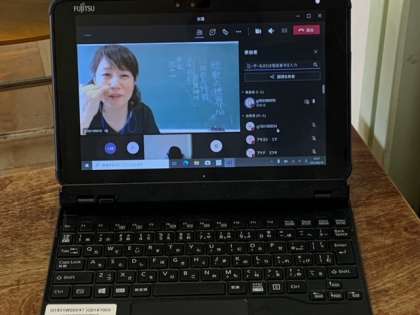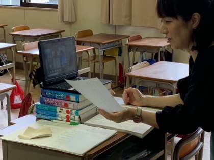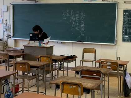 「ものの見方・感性を養う」という単元で、「短歌の世界」について学びました。「〜さん、マイクをオンにして答えてください」と対話を重んじながら授業を進めました。