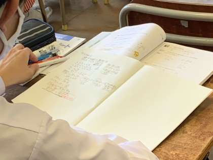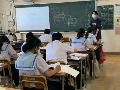数の平方根の計算について、分母に平方根を含む場合の計算について学びました。おかし易いミスの例を具体的にいくつか出しながら、生徒に確認しながら授業を進めています。生徒も一つ一つの説明に頷きながら授業を受けています。