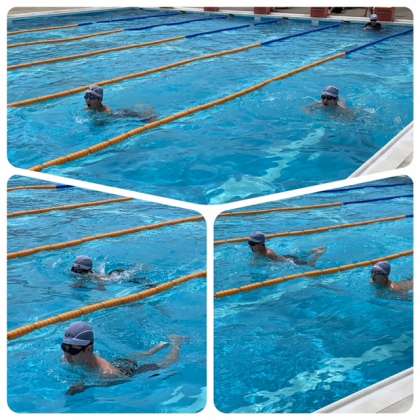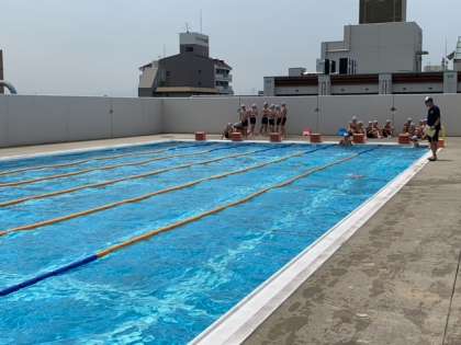 平泳ぎのテストを行いました。ウォーミングアップを十分に行った後、2人ペアになり、先生の合図で順番に水中スタートで泳ぎました。上手な生徒もいますが、あおり足の生徒もいます。コツを教わって正しいフォームを身につけていきましょう!