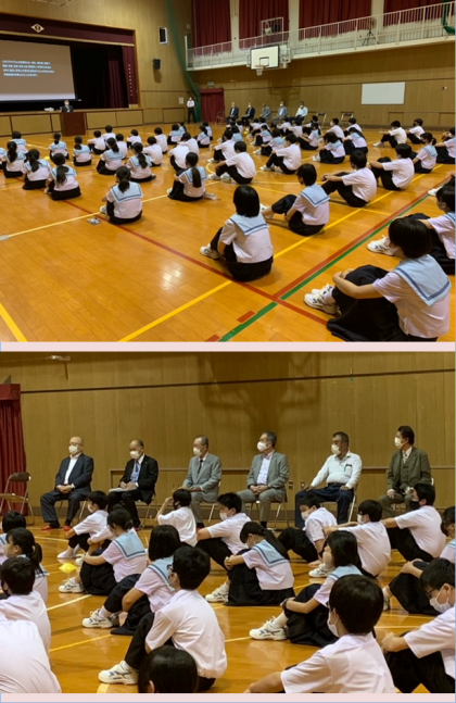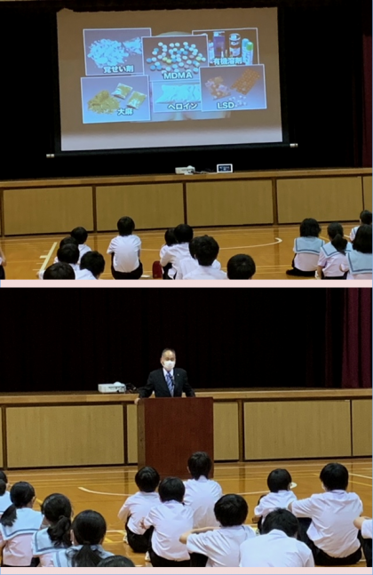薬物乱用防止教育ビデオを視聴した後、中山様より保護司の立場から実際に目の当たりにした薬物の恐ろしさをお話していただき、向会長様からは薬物の持つ危険性や薬物に手を染めないことの重要性を聞かせていただきました。