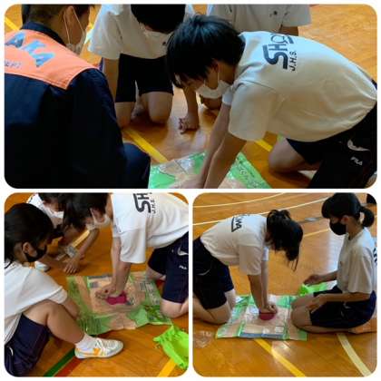 災害時には、自分の命を守るとともに、人の命も助けてあげられるように、中学生としてできることを学んだことでしょう!