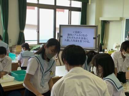 3年1組 理科「酸性やアルカリ性の水溶液の性質」