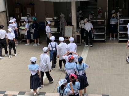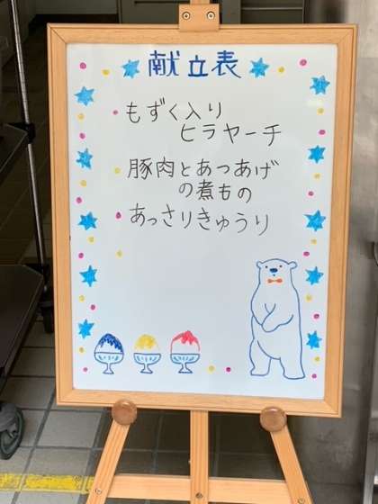 メニューボードは7月用に配膳員さんが涼しく描いてくれています。