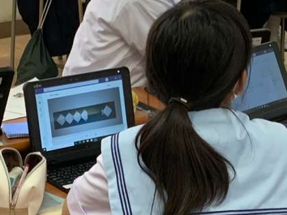画用紙をマグネットでとめていく様子を見て、マグネットの個数がどのように変化していくかを考察しました。グループに分かれて、各自が学習者用端末を見ながらa枚の画用紙を貼った時のマグネットの個数を文字式で表し、グループで各自の考えを共有し発表しました。文字を使うことで、必要なマグネットの個数が一般的に表されることを確認しました。