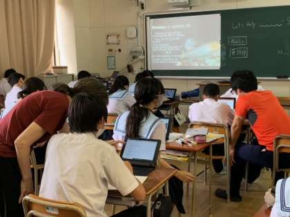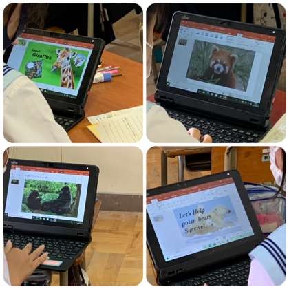 各自がインターネットを使って、絶滅する恐れのある動物について調べました。その動物を守るために、現状と自分の意見や考えを整理して、英文でレポートを書く学習を行いました。作成したレポートをもとに、ペアや他の生徒と意見交換を行いました。