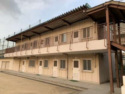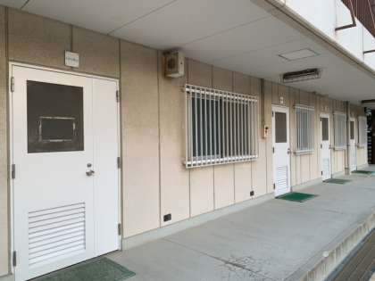 運動場にある部活動ハウスの各部屋の扉と格子にサビが付き始めていたため、業者に依頼して塗装していただきました。