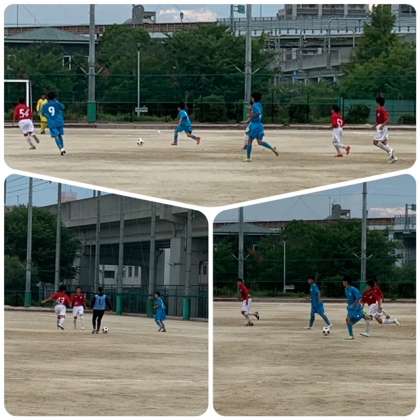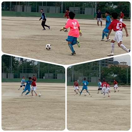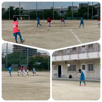 大領中学校と練習試合を行いました。人数の関係で、8対8で広い運動場をドリブルで走り、ボールを追いかけ元気いっぱいに駆け巡っています。運動量も多いですが、練習の積み重ねで、身体も順応しています。