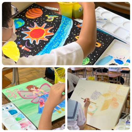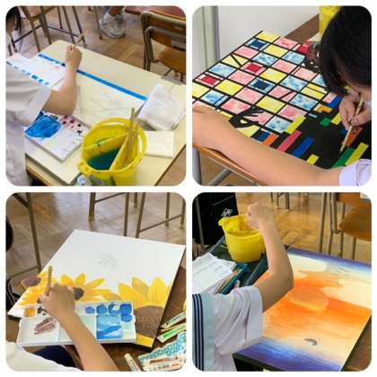 10月29日予定の文化発表会に向けて、各自が自由にテーマを決めて思い思いの絵画を描いています。