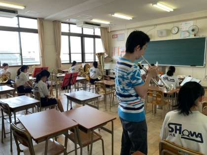 技術指導員の先生にお越しいただき、金管楽器の指導をしていただきました。