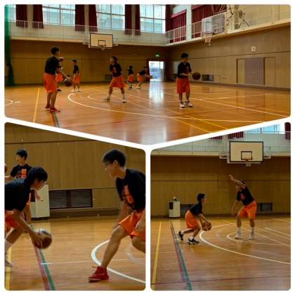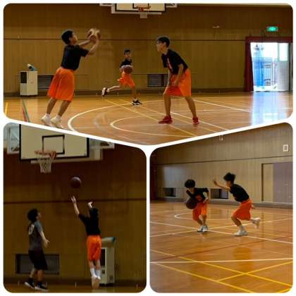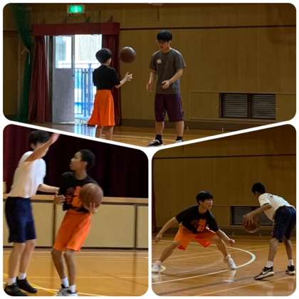 ドリブルで相手を抜き去るマンツーマン練習を、時間をかけて行いました。ボールを床に突くようにドリブルをすることで、ボールコントロールが上手くいき、相手を抜き去ることができるようでした。何度も繰り返し練習しています。
